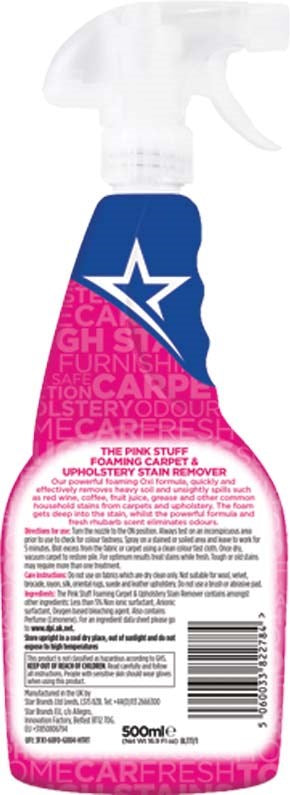 Vår kraftfulla skummande OXI-formula tar snabbt och effektivt bort smuts och fula spill som rödvin, kaffe, fruktjuice, fett och andra vanliga hushållsfläckar från mattor och dylikt. Skummet tränger djupt in i fläcken, samtidigt som den kraftfulla formulan och doft av färsk rabarber eliminerar lukten.