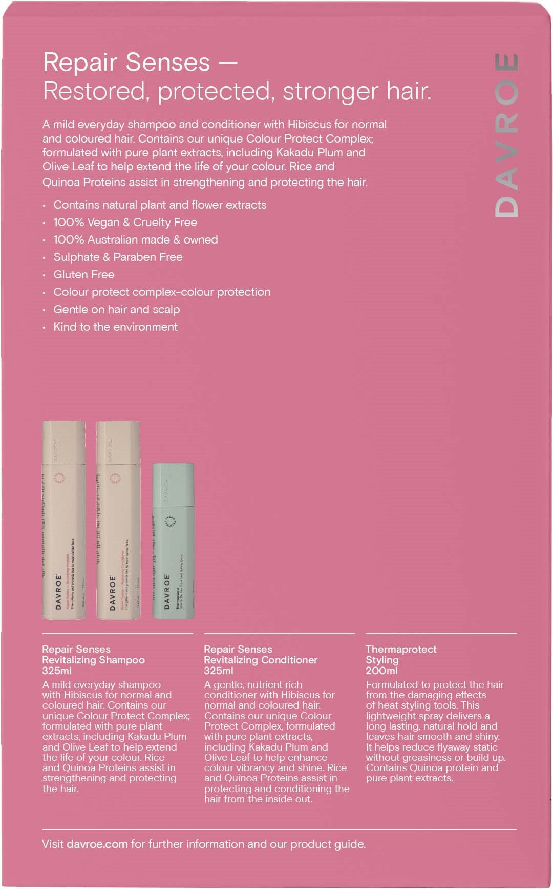 Repair Schampo och balsam är milda och skonsamma för normalt och färgat hår och kan användas daglien. Innehåller färgbevarande ingredienser som växtextrakt från kakadu-plommon och olivblad. Protein från quinoa och ris stärker och skyddar håret.