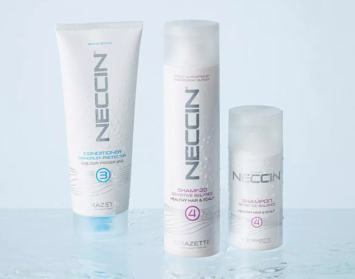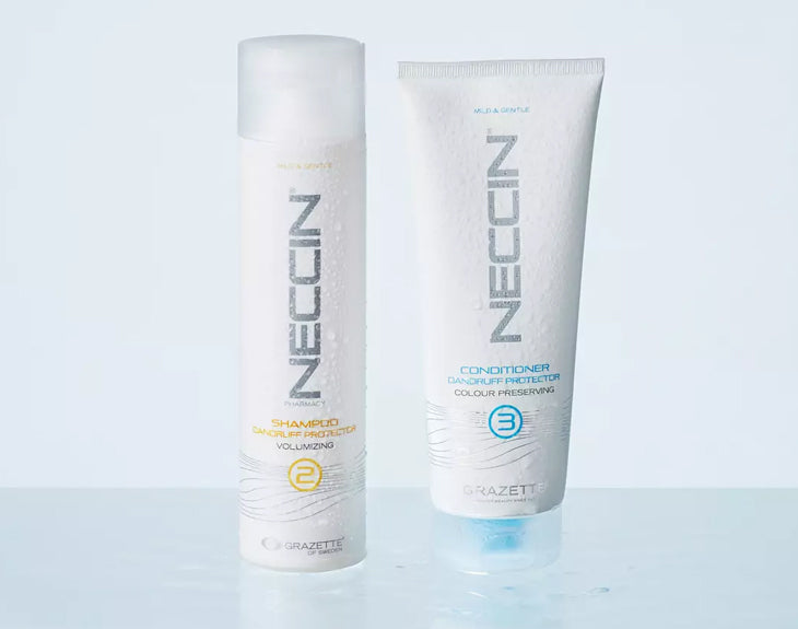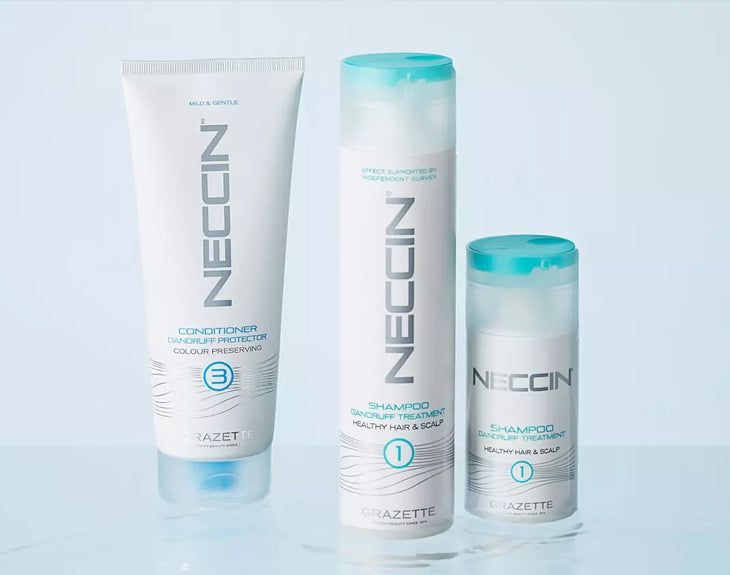 Neccin anti-dandruff-produkterna erbjuder en skonsam och effektiv lösning för ihållande mjällproblem. Med Piroctone Olamine balanseras hårbottens mikroflora samtidigt som en mild tensidsammansättning rengör utan att torka ut. Produkten lugnar och vårdar hårbotten vid daglig användning, för ett hälsosamt hår och en frisk hårbotten.
