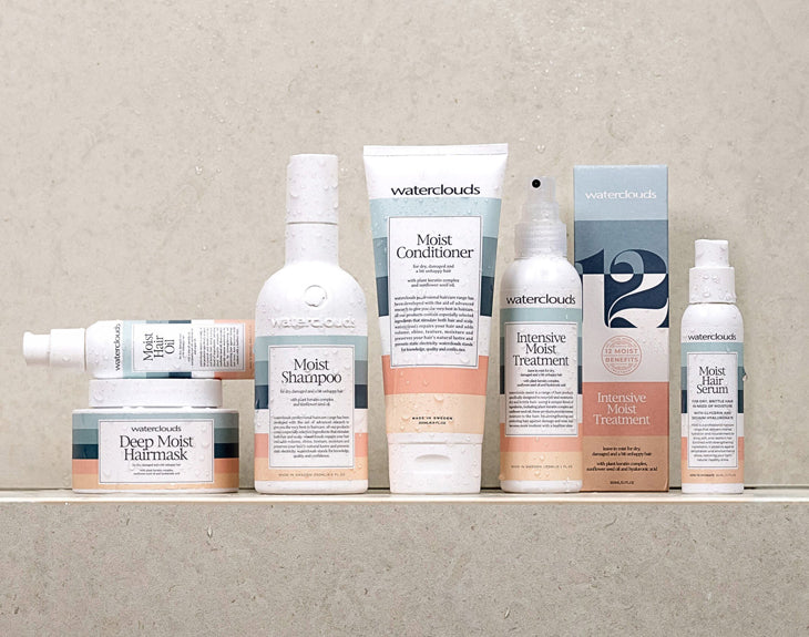 Waterclouds haircare är ett svenskt hårvårdsmärke med rötter som sträcker sig tillbaka till 1960-talet när tre kollegor inom frisörbranschen bestämde sig för att skapa ett schampo med mer vårdande egenskaper. Receptet utvecklades och förfinades över tiden, och det ledde till starten av Waterclouds som vi känner till idag. Hela produktserien är utvecklad i linje med de höga kvalitetskrav som ställs på salongsprodukter och har använts flitigt av professionella frisörer och stylister sedan lanseringen 2001. Idag är våra produkter inte bara givna i många salonger runt om i Europa, de är också en viktig del i många människors dagliga hårvårdsrutin. För att få friskt och vackert hår är återfuktning nyckeln.